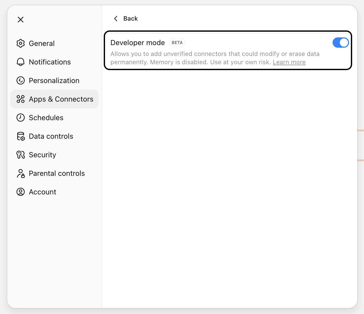 Now, you need to enable Developer Mode in ChatGPT.